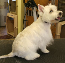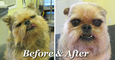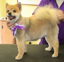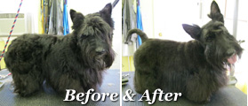 Grooming rates vary and depend largely upon the breed of dog and condition of its coat. When booking your grooming appointment, please specify the type of coat, condition of coat, and pets temperament during grooming. We can not guarantee that the cut will be specific to the owners wishes. If the condition of the coat is such, that we have to "strip" the coat we only do so because we do not want to cause any harm or discomfort to your pet. If your dog requires a specific breed cut and its coat is in proper condition we will groom it to breed specification.